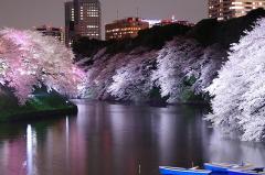 ソメイヨシノ、ヤマザクラ、オオカンザクラなど約300本の桜が花開き、仕事帰りに立ち寄るビジネスマン、花見を楽しむカップル、地方から東京見物に来た人で毎年、賑っています。昼間は貸しボートに乗り、水上からもお花見ができます。3月下旬~4月上旬にかけてライトアップが行われ、幻想的な夜桜も楽しめます。 「千代田のさくらまつり」が3月28日~4月6日に開催され、千鳥ヶ淵緑道がメインスポットになります。青空と桜並木のコントラストが水面に映る光景はまさに圧巻です。 各スポットは徒歩圏内なので歩いて回ることができ、 最寄り駅は、地下鉄の九段下駅、JRの飯田橋駅・市谷駅になります。
