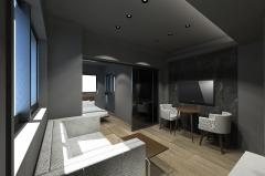 【設備・仕様】 完全禁煙、ホテル式内廊下、デザイナーズ、1Fエアー・シャワールーム(花粉・粉じんを約90%除去、天井照明には殺菌効果のある紫外線ライトを導入)、ダブルオートロック、各階指定着床セキュリティ機能付きエレベーター、防犯カメラ(ネットワークシステム)、SECOMセキュリティ導入、宅配ボックス、ハンズフリーシステム(ノンタッチキー「Tebraキー」)、ペアガラス、セキュリティ機能付モニターフォン(「パトモ」自動録画システム)、玄関姿見鏡、インターネット無料(壁埋込型 無線LAN/Wi-Fi)、玄関人感センサー照明、ステンレスシステムキッチン、イタリア製洗面ボウル、調光器付ダウンライト、タンクレスシャワートイレ、浴室暖房換気乾燥機、スマートエアコン対応(外出先からスマホでエアコン操作可能)、追焚き機能(5F)、高温差し湯機能(2-4F)、自動湯張り、窓付き浴室(一部除く)、収納、壁掛け43型テレビ(インターネット対応)、全自動洗濯乾燥機、2ドア冷蔵庫、電子レンジ、ブラインドカーテン、収納付きベッド、ダイニングセット・ソファーセット(一部除く)、内廊下、アクセントクロス仕様、浴室アクセントパネル仕様