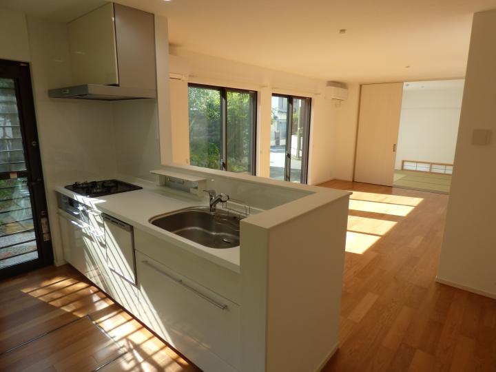 2015年3月中旬完成予定、駐車場2台分、独立洗面化粧台(2階)、洗面脱衣所(1階)、トイレ2箇所、ガス3口システムキッチン、カウンターキッチン、床下収納、浄水器、食洗機、エアコン3基、室内洗濯機置場、床暖房、庭、TVモニター付インターフォン、追焚き機能付バス、浴室乾燥機