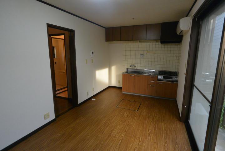 メゾネットタイプ、ペット相談(小型犬1匹まで)、追焚き機能付バス、モニター付インターフォン、プロパンガス、フローリング、ガス2口コンロ設置可、室内洗濯機置場、出窓、LDK自動シャッター雨戸、洗面脱衣所、エアコン、専用庭、バルコニー、敷地内駐車場、敷地外駐車場