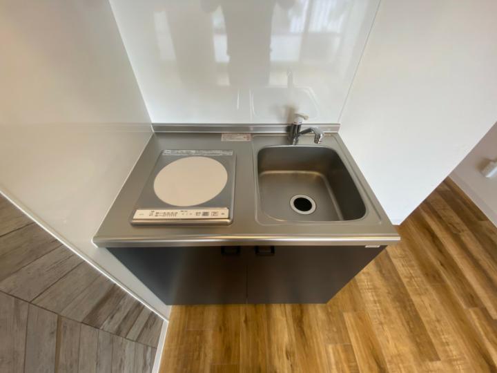 分譲賃貸マンション、夜間オートロック、防犯カメラ、TVモニター付インターフォン、エレベーター、インターネット、エアコン、フローリング、IHクッキングヒーター、シャワールーム、独立洗面台、室内洗濯機置場、レール照明スポットライト、吊り下げ収納、アクセントクロス仕様、バルコニー、駐車場、駐輪場、バイク置場、都市ガス、管理人常駐