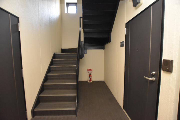 TVモニター付オートロック、外壁タイル貼り、内廊下、内階段、マルチメディアコンセント、インターネット、CATV、シューズボックス、インターフォン、エアコン、ガス2口システムキッチン、室内洗濯機置場、バス・トイレ別、洗髪洗面化粧台、収納、バルコニー