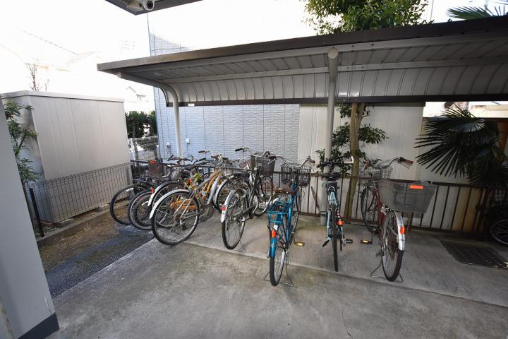 【設備・仕様】 外壁タイル貼、駐車場、駐輪場、光ファイバー、防犯カメラ、モニター付インターフォン、シューズボックス、ガス2口コンロ設置可、追焚き機能付バス、独立洗面台、室内洗濯機置場、エアコン、クローゼット、バルコニー