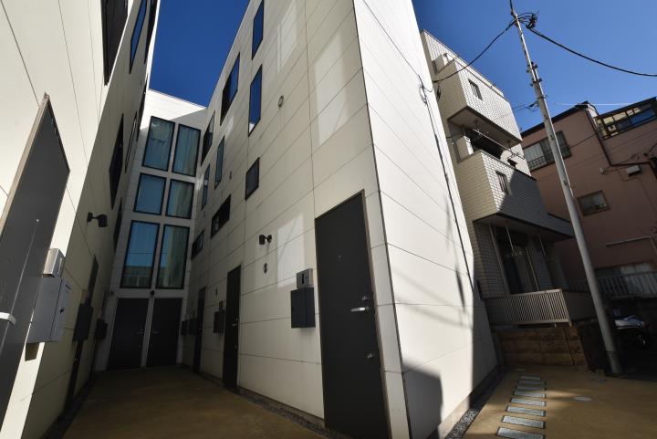 本物件は、京成本線「千住大橋」駅から徒歩6分の足立区千住宮元町に立地する、2016年竣工 地上3階建て総戸数8戸のデザイナーズ賃貸アパートメントです。JR常磐線「北千住」駅からも徒歩13分程となっており、東京メトロ日比谷線や千代田線、東武スカイツリーラインも利用可能なため、各地へのアクセスが非常に便利な物件です。洗練された白い外壁が特徴的なデザイナーズ仕様で、各戸の玄関が全て1階に配置され、2階、3階に上がっていくゆとりある広さのメゾネットタイプ(専有面積30.48~34.21㎡)です。さらに3階部分にはロフトが設置されており、4層構造の設計となっております。無料インターネットが導入されている他、防犯カメラ、モニター付インターフォン、追焚き機能付、IH2口システムキッチン、エアコンなど単身者やDINKSに最適な設備仕様が整えられております。