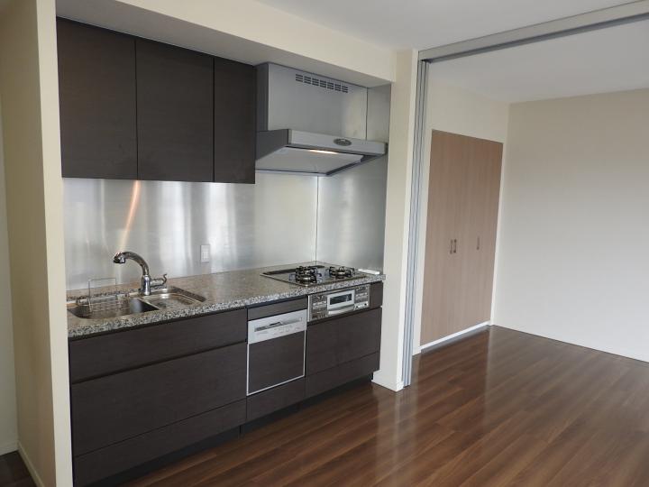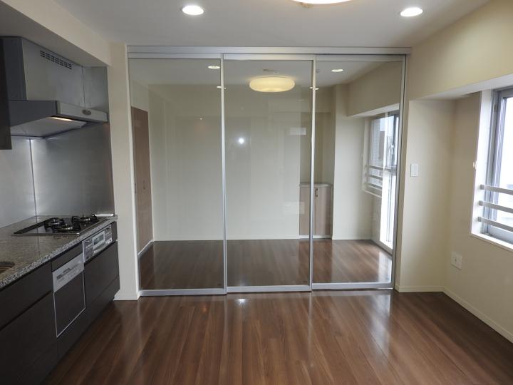 | 設備・条件 | 分譲賃貸マンション、免震構造、モニター付インターフォン、24時間セキュリティ、宅配ボックス、オートロック、防犯カメラ、玄関ダブルロック、エレベーター、エアコン、CATV、床暖房、ディスポーザー、ガス3口システムキッチン、フローリング、可動式間仕切り、内廊下、収納庫、洗面所独立、室内洗濯機置場、食器洗浄乾燥機、CS、インターネット、追焚き機能付バス、駐輪場、専用ゴミ置場、駐車場 |
