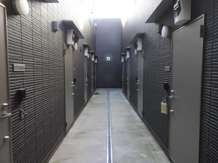 モニター付オートロック、敷地内専用ゴミ置場、駐輪場、バイク置場、無料インターネット、宅配ボックス、ペット足洗い場、BSアンテナ、インターフォン、リードフック、シューズボックス、IH1口キッチン(ミニ冷蔵庫付)、バス・トイレ別、室内洗濯機置場、浴室暖房乾燥機(101なし)、独立洗面台、エアコン