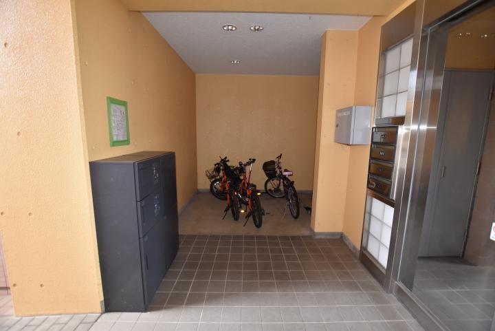 全室角部屋、ワンフロアー2戸のみ、駐車場、駐輪場、敷地内ゴミ置場、オートロック、宅配ボックス、CATV対応、インターフォン、シューズボックス、バス・トイレ別、追焚き機能付バス、独立洗面台、室内洗濯機置場、ガス3口システムキッチン、収納、バルコニー、テラス(1階)